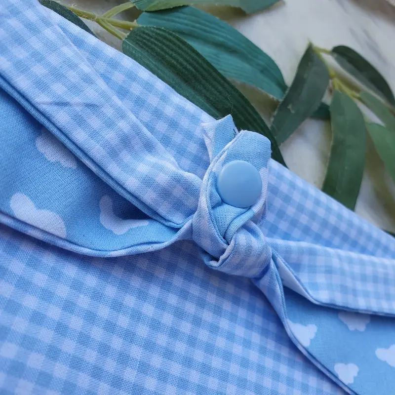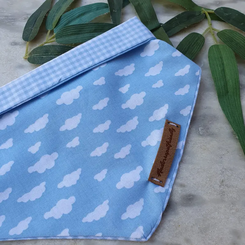 Confeccionada con cuidado y atención a los detalles, esta bandana para mas cotas no solo es un accesorio, es una expresión de estilo. La suavidad del tejido garantiza que tu peludo amigo se sienta cómodo mientras deslumbra con su nueva adición de moda. Ya sea para un paseo casual o una reunión especial, esta Bandana para mascotas Azul con Nubes y Vichy es la elección perfecta para agregar un toque especial a cada día. ¡Eleva el estilo de tu mascota con esta bandana que fusiona lo tierno con lo atemporal!